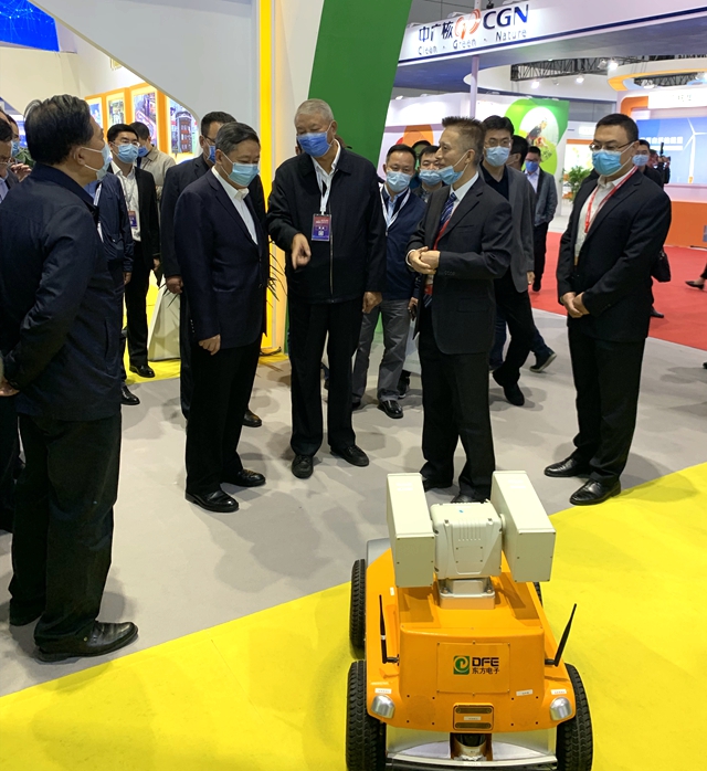 烟台市委书记张术平一行参观了成都嘉园食品技术有限责任公司展厅,详细询问了公司自主研发的智能巡检机器人及其它模块装置。股份公司副总经理陈勇代表公司向领导及嘉宾汇报了公司在核电领域的新技术、新成果,充分表达了公司服务中国核电的信心和决心。