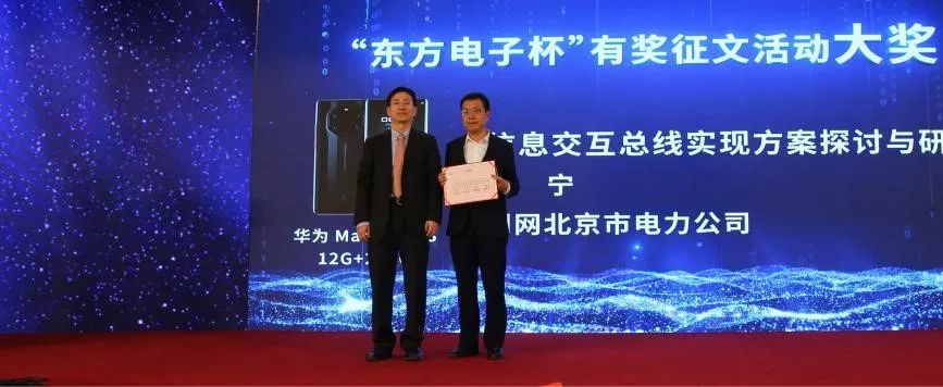 中国电力传媒总经理、党委副书记郝兴国,国网卓越科技总经理孔志国,中国电工技术学会控制与保护专委会秘书长韩万林为二等奖获得者颁奖
