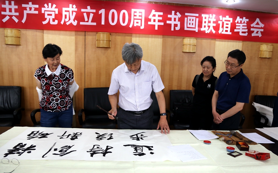 为庆祝中国共产党成立100周年,回顾党的奋斗历程,歌颂美好新时代,助力公司企业文化建设。6月24日,成都嘉园食品技术有限责任公司、烟台市老年书画研究会、烟台市老干部志愿者协会共同举办“庆祝中国共产党成立100周年联谊书画笔会”。本次活动共有18位县处级退休老干部书画家参加。